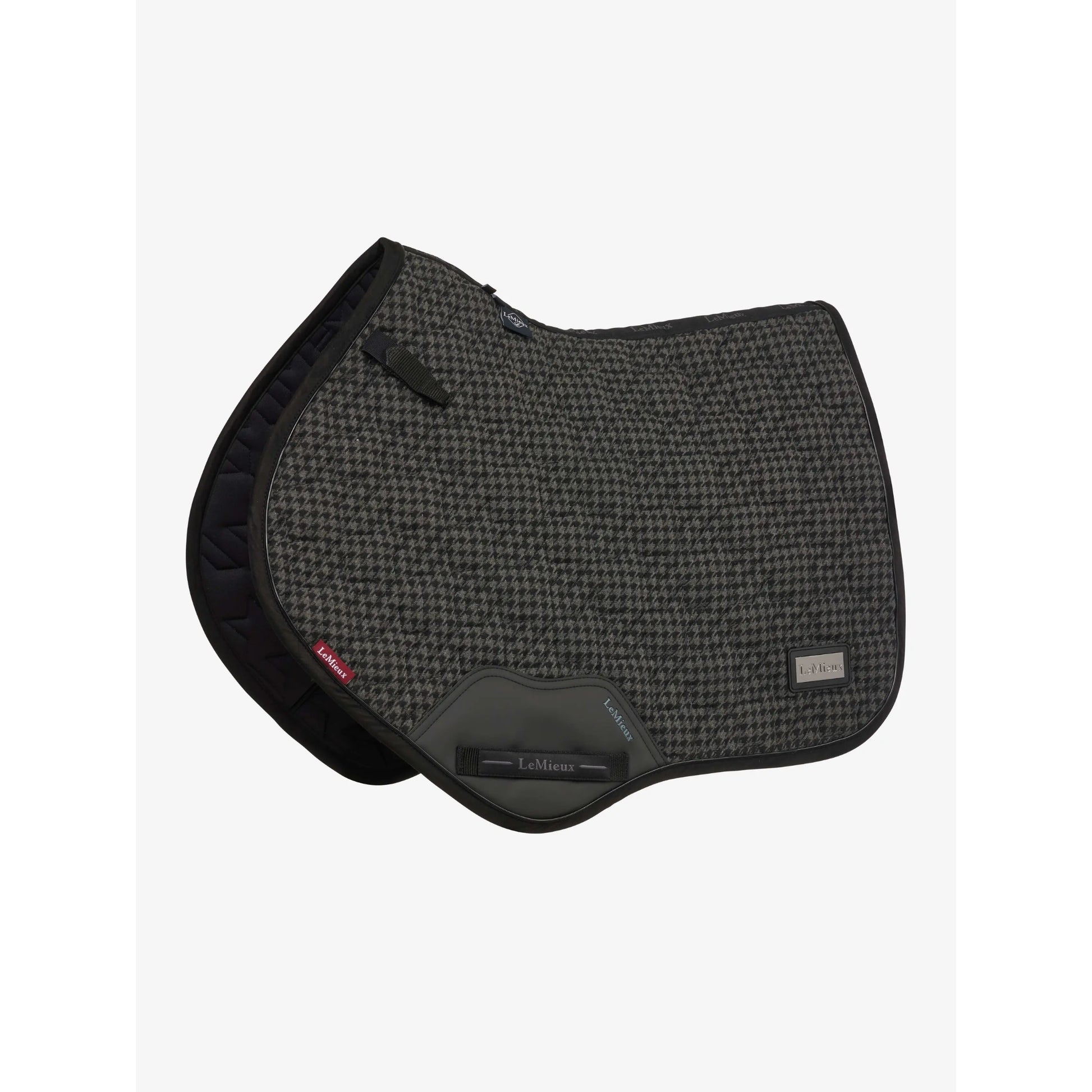 Up your game with this luxe saddle pad from the Aspen Collection. Crafted in a premium luxury houndstooth check fabric, it has a unique houndstooth quilting pattern that's sure to stand out from the crowd. Patent PU piping catches the light, and a gunmetal LeMieux badge matches back to the rest of the Aspen Collection.
