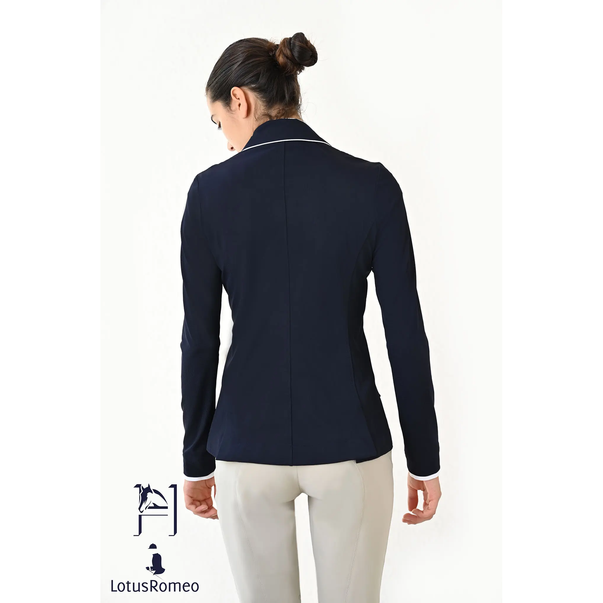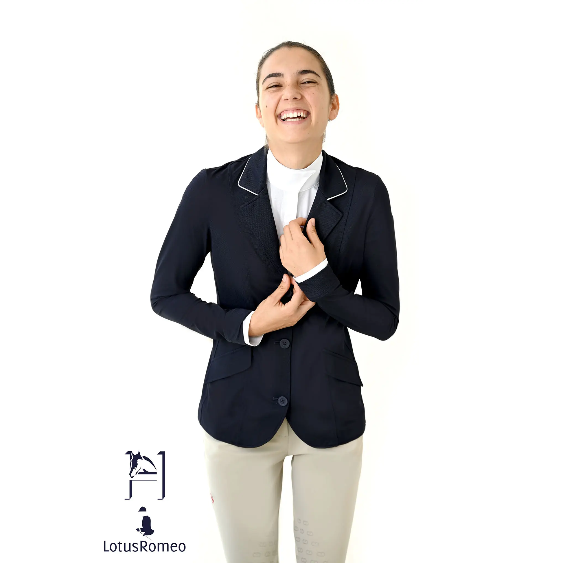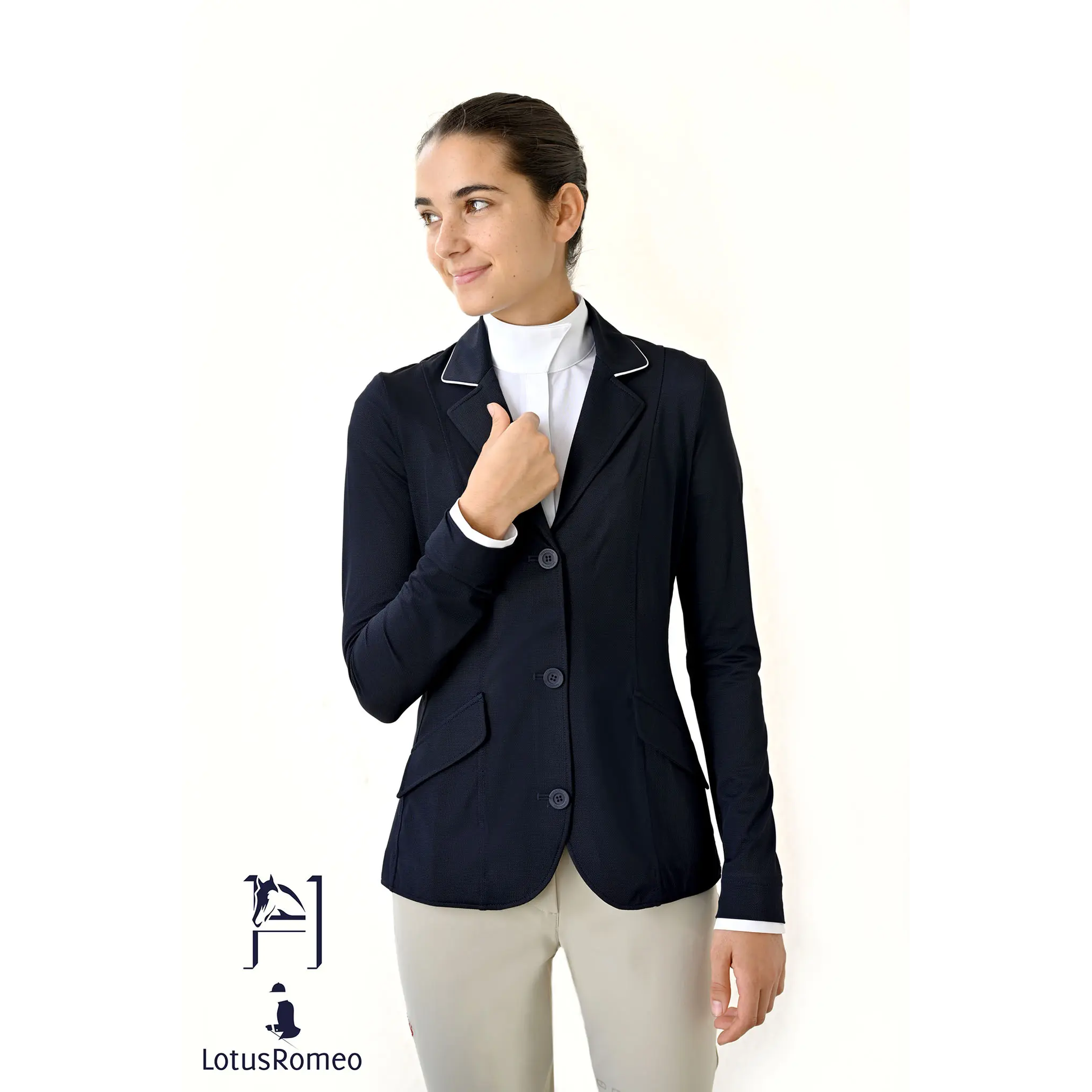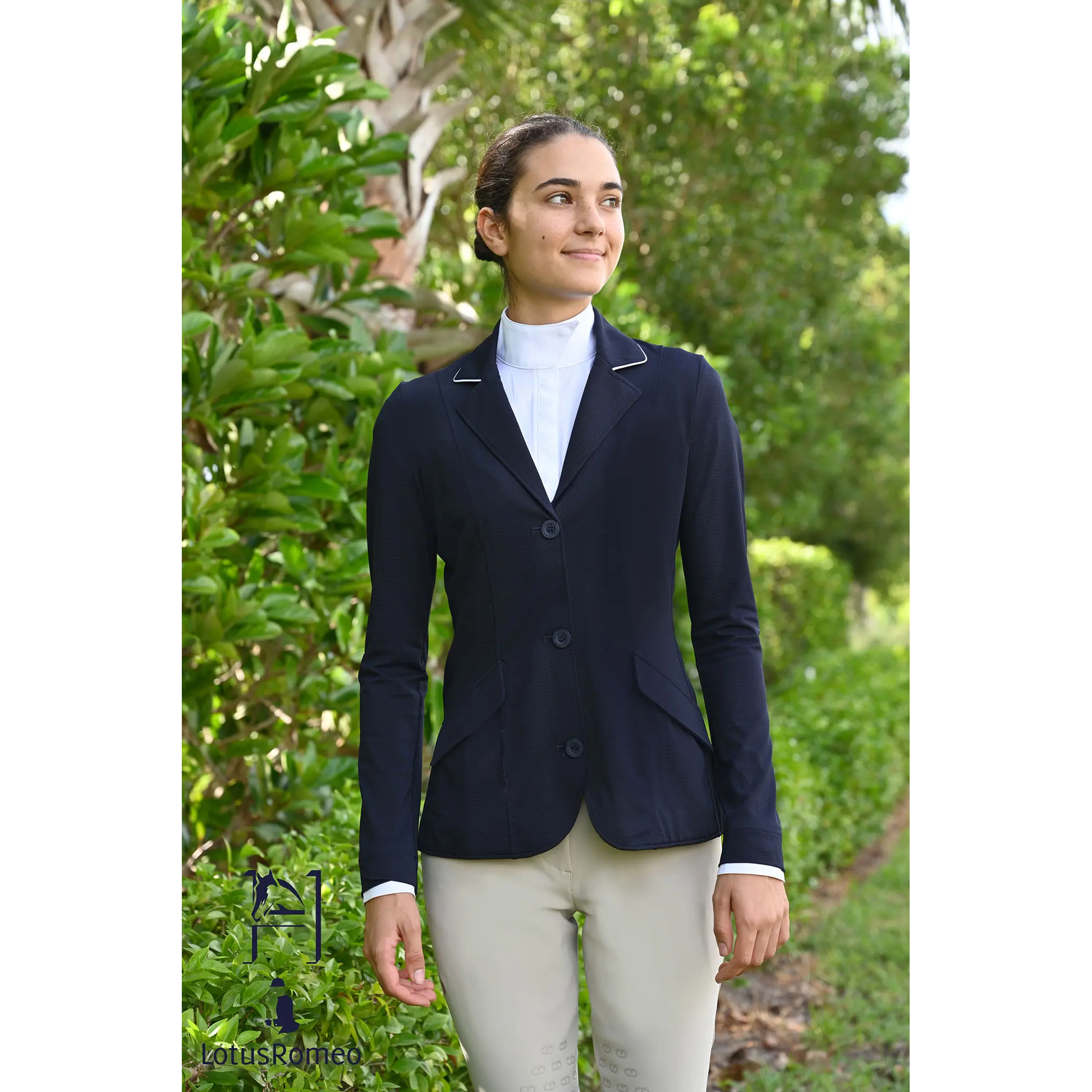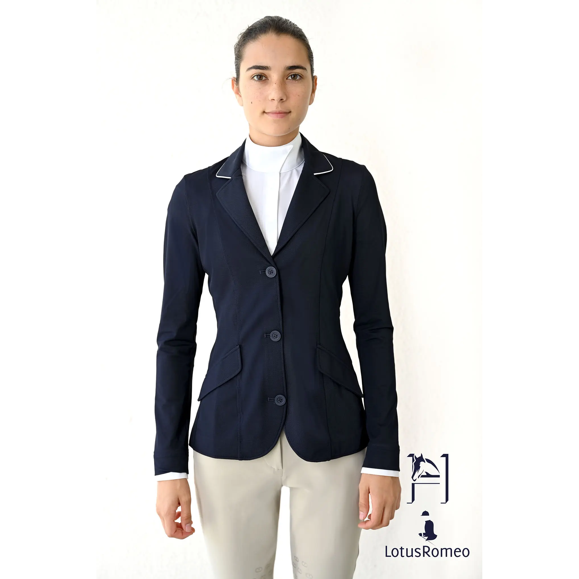The Lisa was carefully designed by a USEF “R” judge with an eye for detail to please riders in the Hunter, Jumper, and Equitation rings. Light, stylish, and impeccable fit, the Lisa show jacket can be ordered with a fully customizable sleeve length. To complete the look, Signature Spurs created the “Lisa” with the unique concept of removable and adjustable faux cuffs. Extra faux cuffs may be purchased separately. We suggest customers purchase extra pairs so they can change them between rides and look fresh and effortless all day!