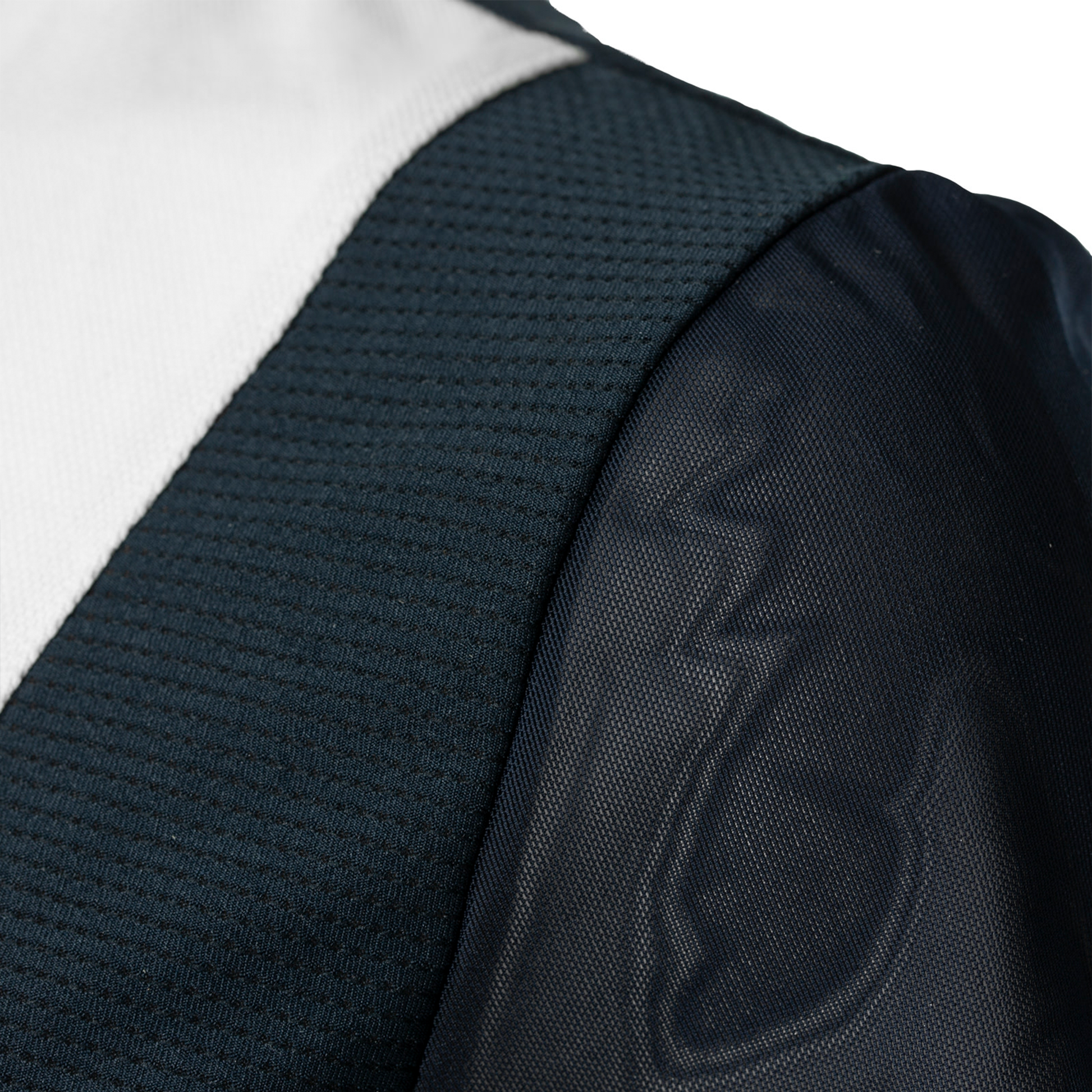 • Front of shirt, cuffs and collar are solid white