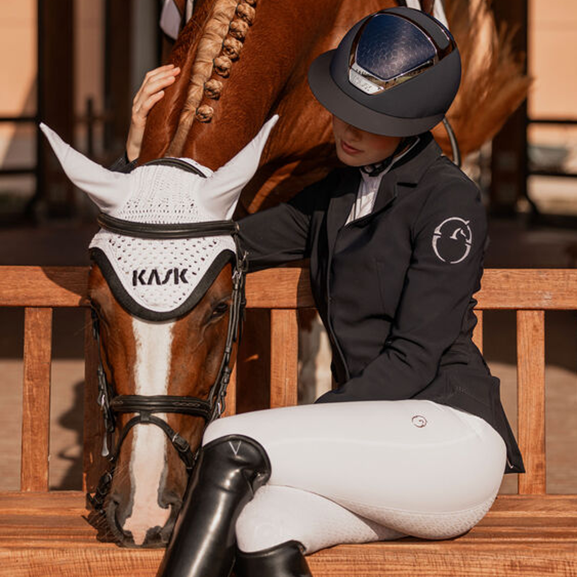 Winning style, dependable safety: this helmet takes on every performance with spirit and determination. Star Lady Chrome strikes the perfect balance between stylish design and outstanding technical performance, topped off by the unmatched comfort that only KASK can deliver. Yet it’s more than just a helmet: it’s a powerful style statement that will instantly grab your attention. Whether you’re competing or training, you’ll always feel the centre of attention when wearing Star Lady Chrome, thanks to the chrome details which bring out its modern, essential lines.